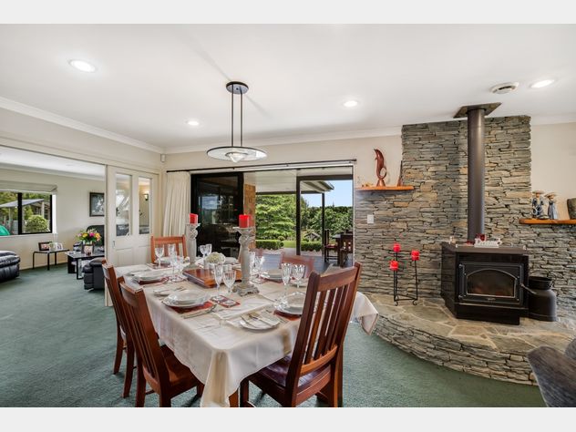 • Open plan dining area with raised wood-burning heater