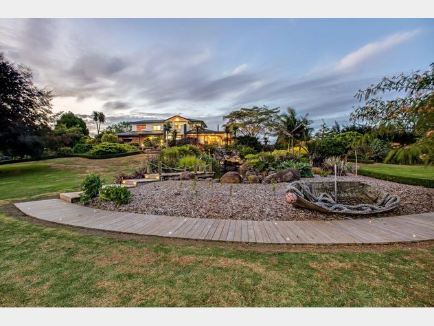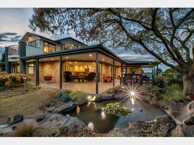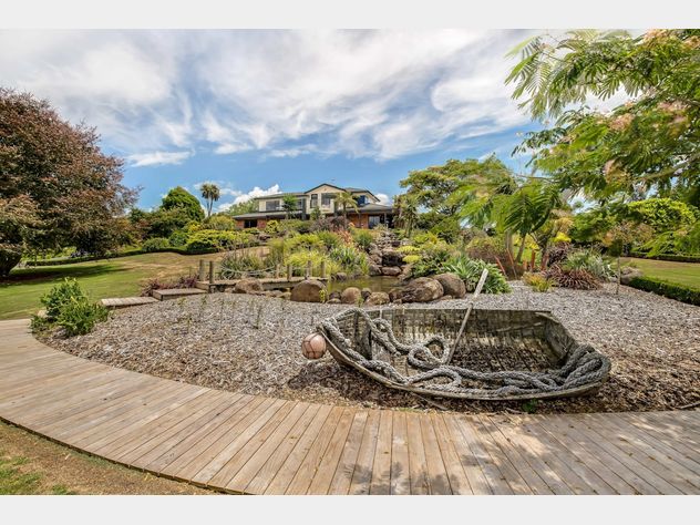 Privately positioned at the end of a secure, quiet road, this immaculate ten acre rural waterfront property is accessed via a stately gated entrance and wide concreted driveway with feature lighting. The elevated, top quality 270 square metre home, designed by architect Craig Mulholland, is surrounded by approx 2acre of immaculate park-like grounds, established trees, gardens, ponds and even a cascading waterfall attracting a myriad of bird life. Celebrating magnificent views of the Manakau Harbour, this superb much loved residence was built by our vendor who is now downsizing and has already arranged to move elsewhere.